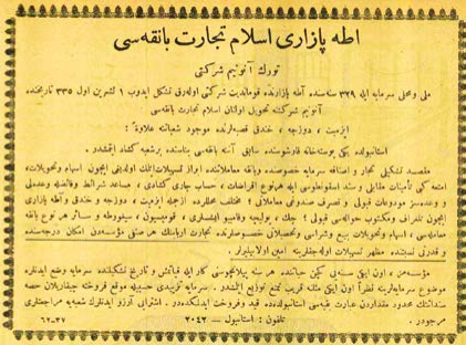 Bu konuda 8 Mayıs 1918’de banka tarafından Tanin gazetesine çekilen telgraf metni şöyleydi: “Adapazarı 8 Mayıs Nefs-i kasaba ahalisi istikraz-ı dâhiliye üç gün zarfında 50.000 lira kaydolunmuştur. Bu meyanda İslâm Ticaret Bankası 22.000 liralık hisse iştira eylemiştir. Umumun rağbet ü hahişi pek ziyadedir.