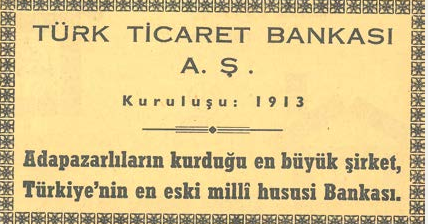 Şube sayısını artıran Adapazarı Türk Ticaret Bankası, çeşitli gazetelerde verdiği ilanlar ile halkın tasarruflarını çekmeye çalışmaktaydı. 11 Aralık 1930 tarihli Hür Fikir gazetesinde bu amaçla verilen ilan şu şekildeydi: